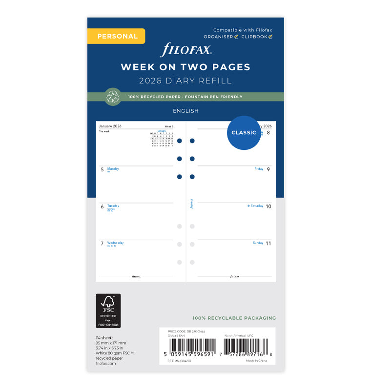 Nemůžete se dočkat, až si zapíšete do diáře všechny plány na ekologicky šetrný rok 2026? Začněte žít udržitelným životem s tímto klasickým kalendářem velikosti Osobní a rozložením týden na 2 strany. Pouze v anglickém jazyce.