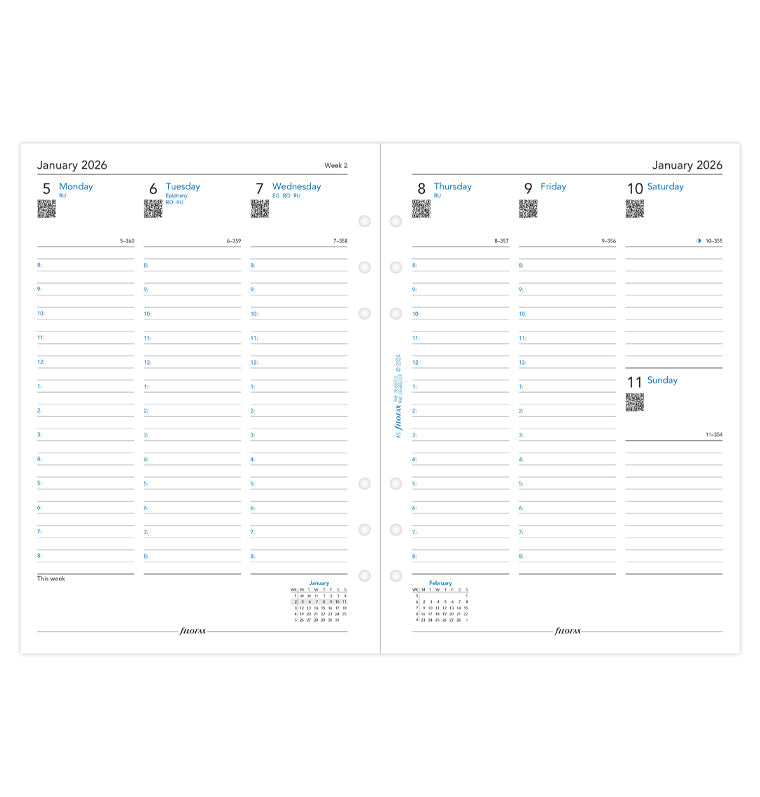 kalendář týden/2 strany 2026, A5, sloupce s časem, anglický - recyklovaný papír